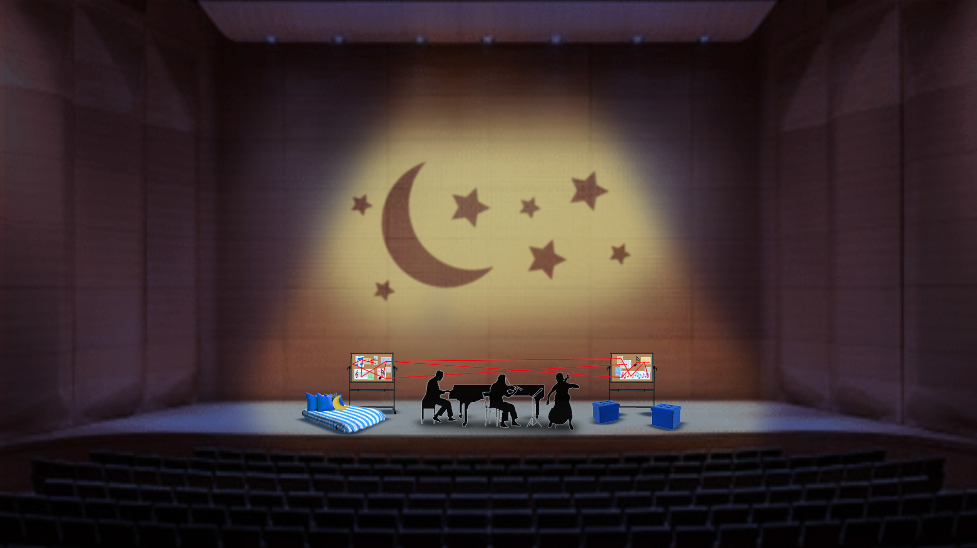 Script: Bruce Adolphe | Scenic Designer: Emily Mustillo | Lighting Designer: Josh Benghiat | Stage Manager: Richard Adger | Photos: Cherylynn Tsushima